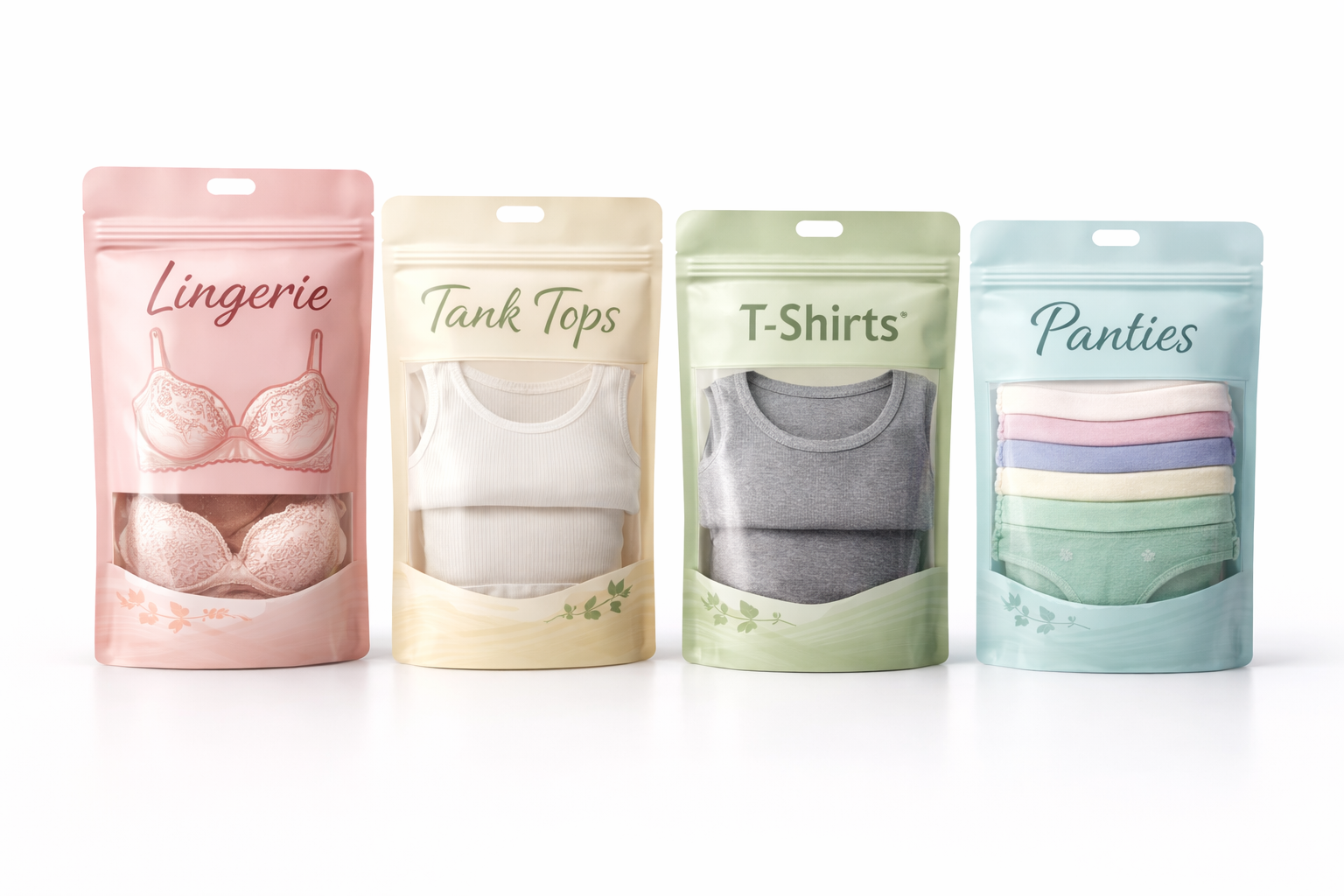 Les formats disponibles incluent des sachets refermables, des sacs d’affichage suspendus, des sachets autonomes et des conceptions avec fenêtre. Chaque sachet d’emballage pour vêtements peut être sélectionné en fonction de la taille du vêtement, de la fréquence de manipulation et des besoins en présentation, ce qui rend ces sachets adaptés au commerce électronique, à la distribution de détail et à l’emballage en vrac de vêtements.