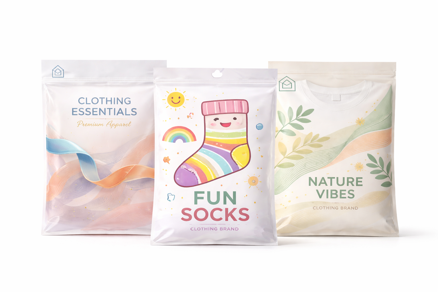 Différentes applications vestimentaires nécessitent différents types de sachets d’emballage pour vêtements. Pour l’expédition et la gestion, les sacs légers et les sachets plastiques pour vêtements aident à réduire les coûts de fret tout en protégeant les vêtements de la poussière et de l’humidité. Pour la gestion interne et l’affichage en magasin, les sachets transparents et clairs permettent une identification rapide des produits et une présentation soignée.